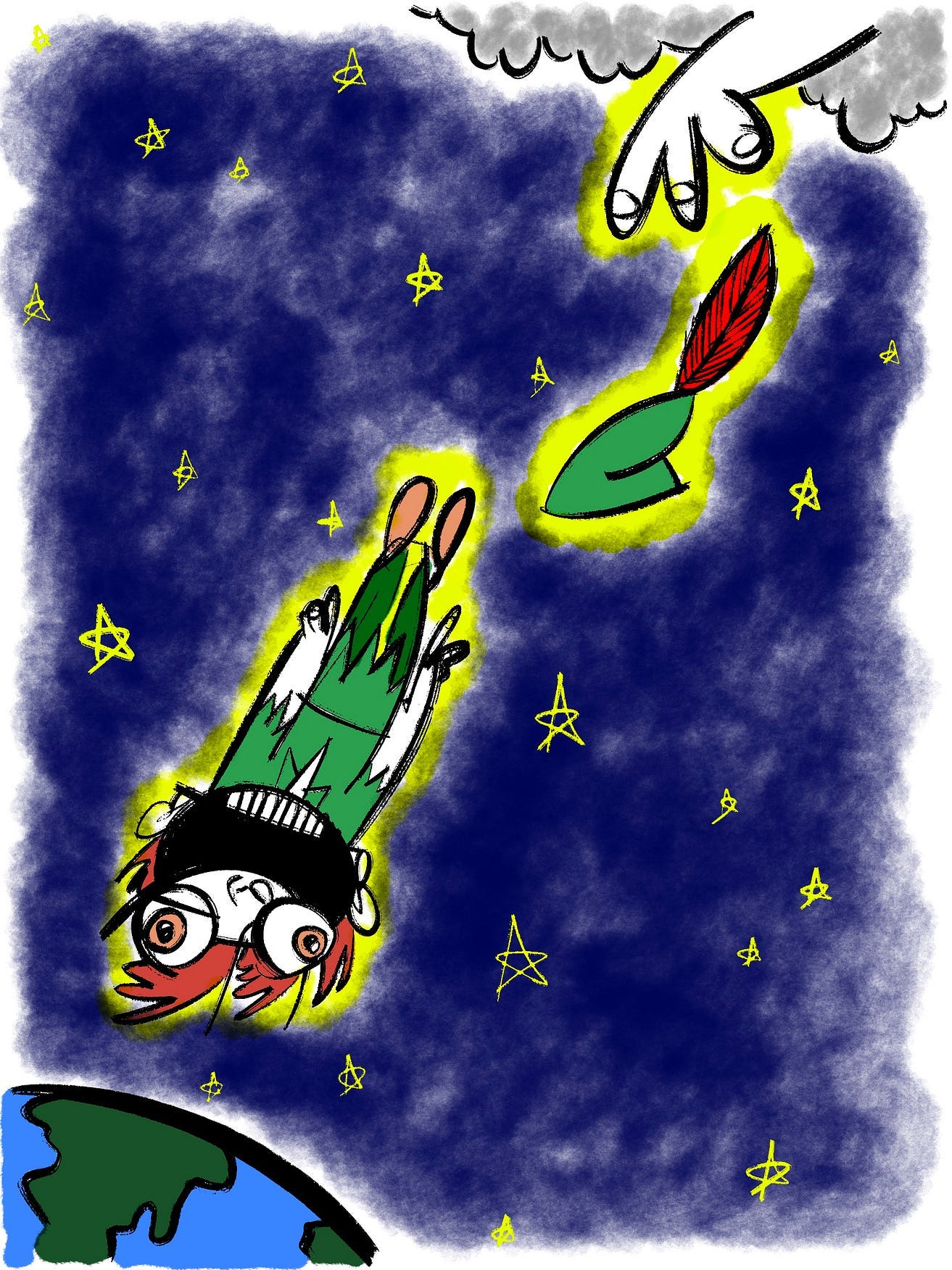 He fell straight for his cast-off shadow where it waited on the Earth below.
