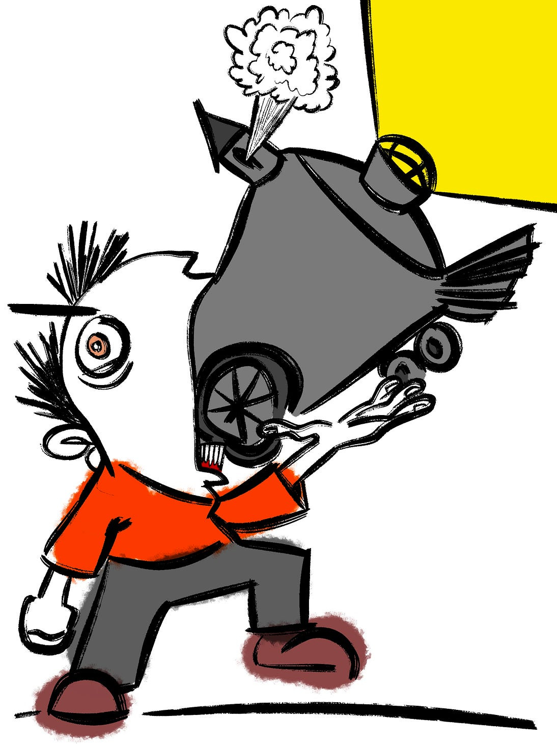 I’ve got anger, too, of course. It grows out of daily frustrations, minute-by-minute social wounds. But I release my anger a little at a time every day through exercise, sighs, teeth grinding, farts, and imagined intellectual arguments in which I defeat my enemies so soundly that they physically attack me and break on the rock of my muscles, of course, then they accidentally call me “Dad.”