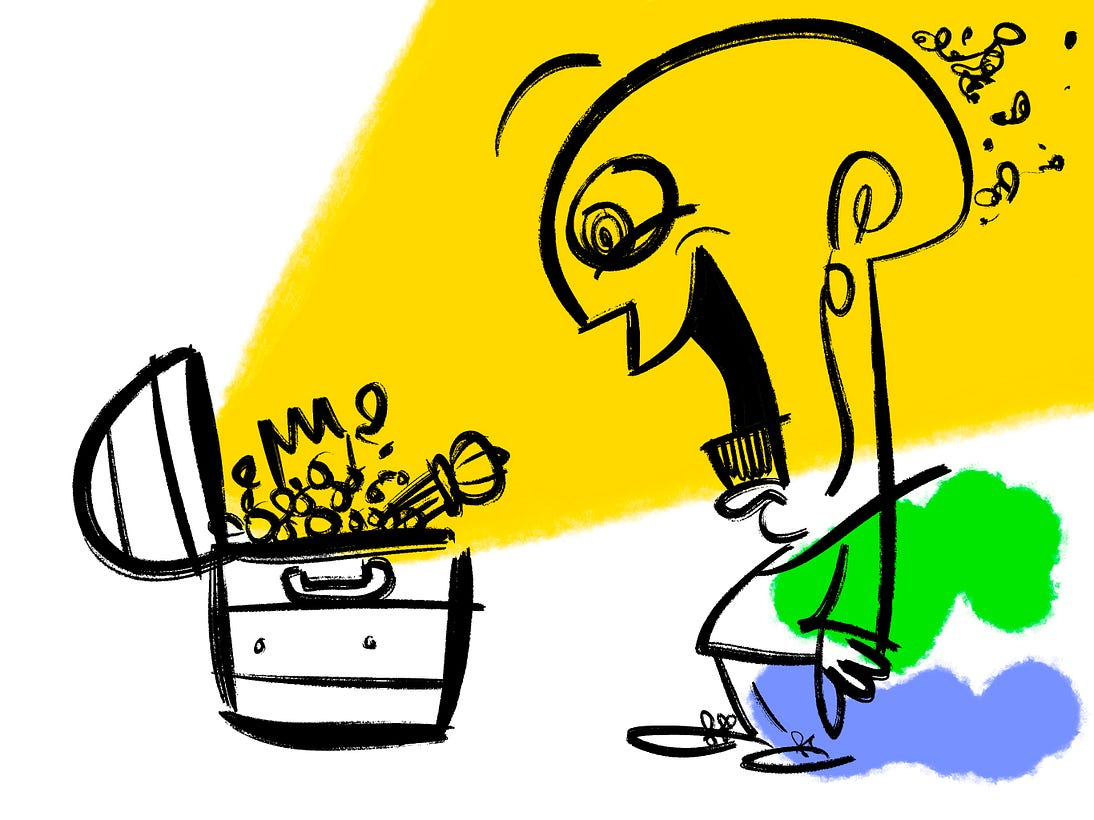He can’t just fill the bucket and draw it up. Imagine a well plugged by the Gordian Knot.